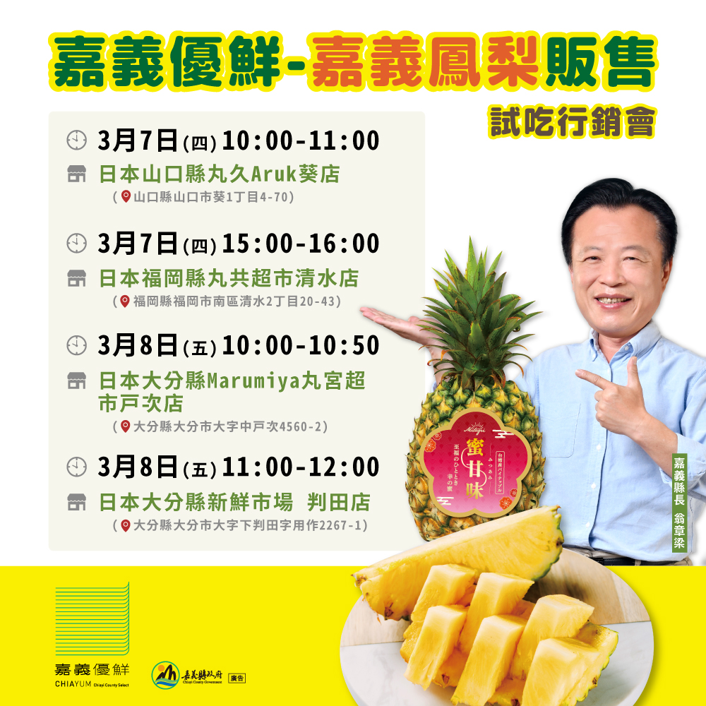 嘉義金鑽鳳梨蜜甘味在日本山口縣、福岡縣及大分縣的超市開賣,與更多日本朋友分享在地好滋味。