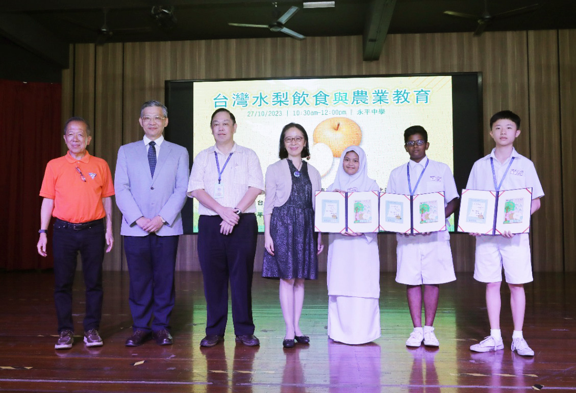 more台農發公司於馬來西亞永平中學舉辦「2023台灣水梨飲食與農業教育」活動,於10月27日在永平中學大禮堂熱鬧進行,駐馬來西亞台北經濟文化辦事處葉大使非比、永平中學何署理董事長宗榮、永平中學李校長保康、台農發公司洪董事長忠修蒞臨現場,與學生一同共襄盛舉。