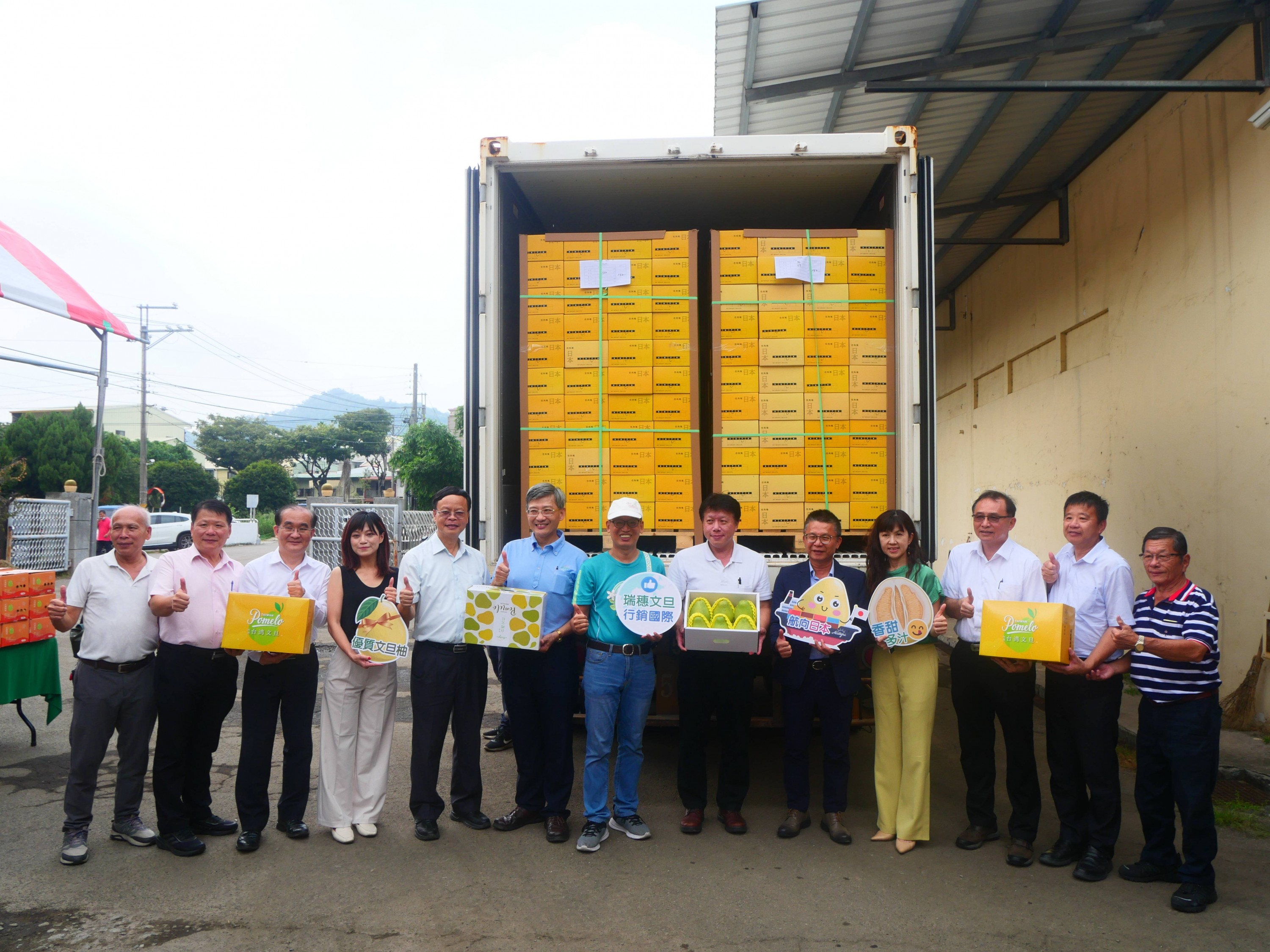 瑞穗優質文旦行銷日本,今日於台灣省青果運銷合作社台中分社舉辦「2023瑞穗文旦出口日本啟運記者會」,由農業部、瑞穗鄉農會黃盛皇總幹事、日本一番株式會社吳啟源社長、台農發股份有限公司洪忠修董事長、台灣省青果運銷合作社余致榮理事主席暨曾詠松總經理等人一同參加,見證優質文旦柚出口日本首航沖繩啟運典禮。