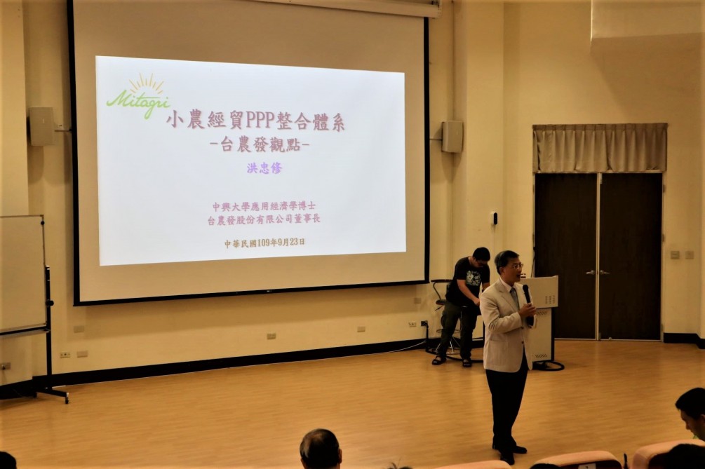 台農發董事長於9月23日受邀至國立屏東科技大學演講,演講題目為:小農經貿PPP整合體系-台農發觀點。 現場學生們聽得津津有味,於演講後與董事長相互交流。希望透過演講,帶給未來年輕人們了解小